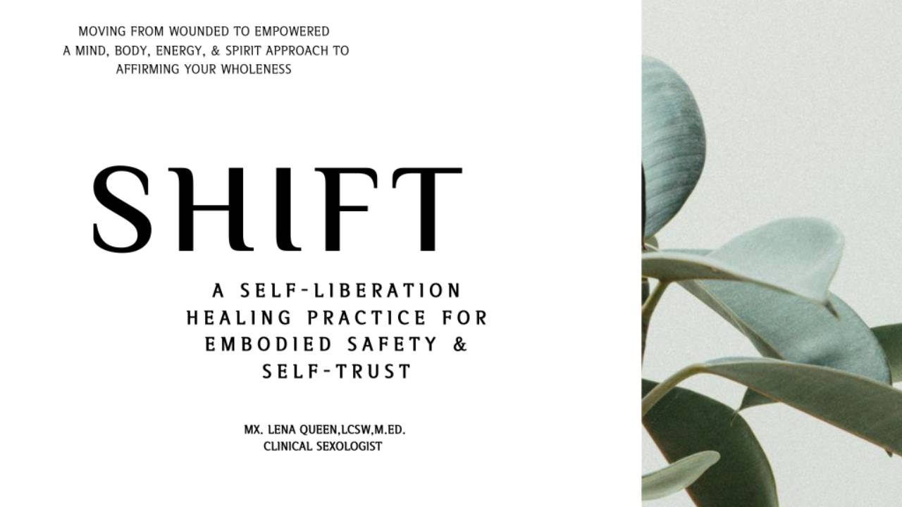 Rooted in integrative psychotherapy, somatic healing, erotic intelligence, healing justice, and decolonizing healing, this book introduces SHIFT—a four-part self-care framework (Ground, Center, Nurture, Affirm) designed to move readers from crisis to thriving. This 4-part evidence-based integrative somatic care system and healing framework for liberated living helps you regulate your emotions, reprogram negative self-talk, and create safety and self-trust within your body—one breath, one choice, one presence practice at a time. BONUS included: The full book of SHIFT, A Self-Liberation Practice.